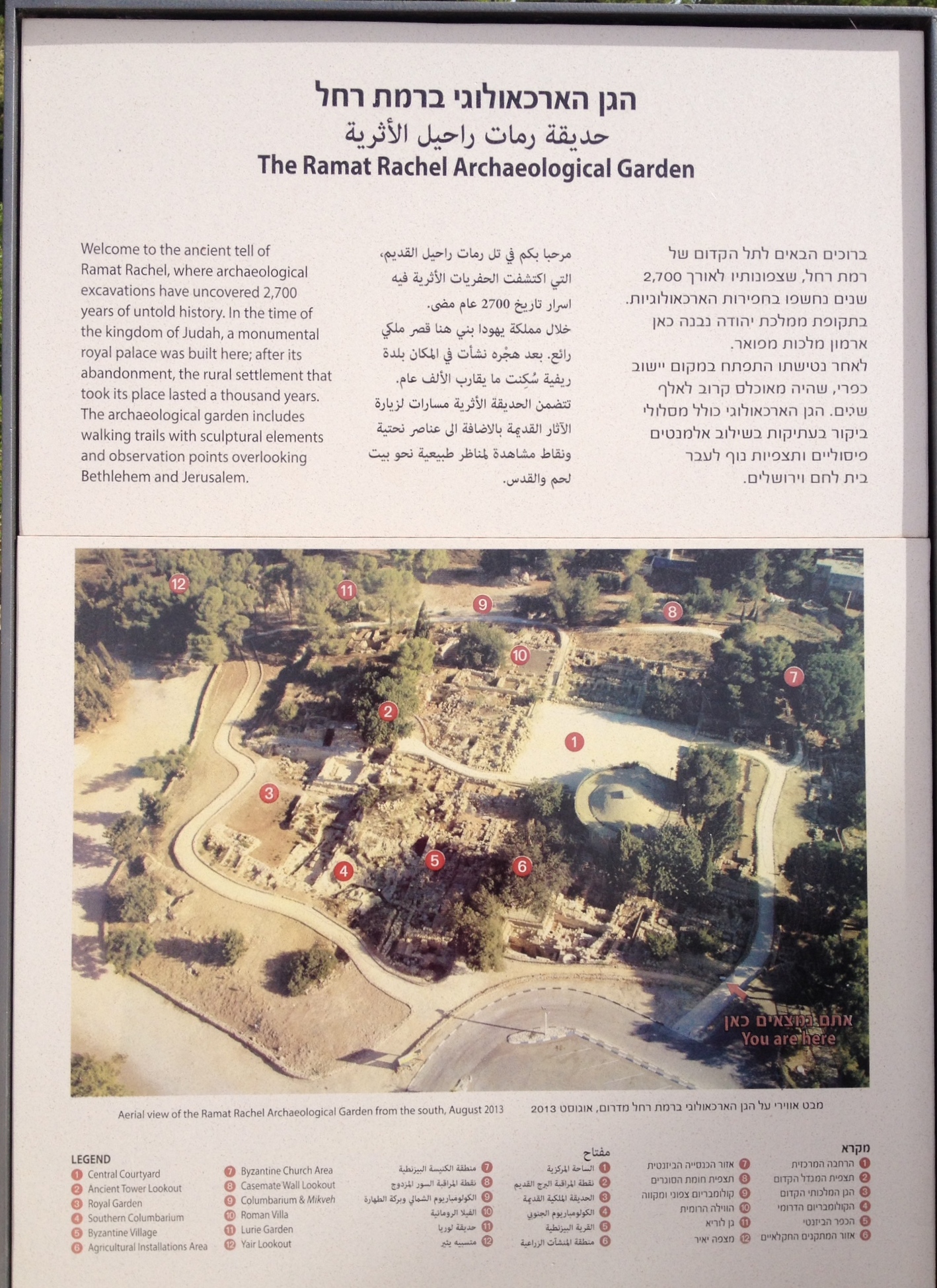 I’ve had the pleasure of visiting the Archaeological Park at Kibbutz Ramat Rachel a number of times while visiting friends who live at Ramat Rachel. For me, one of the most fascinating discoveries at the site was the ancient buried Columbarium or dovecote, as illustrated in this link about the excavations: Ramat Rachel Archaeological Project.