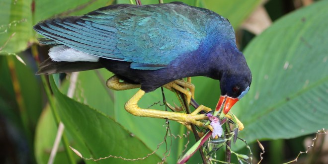 As they grow and gain more confidence, Purple Gallinules become incredibly adept.  As adults, they are not only stunning in appearance, they are also equally efficient at eating upside down and right-side-up! imageimage