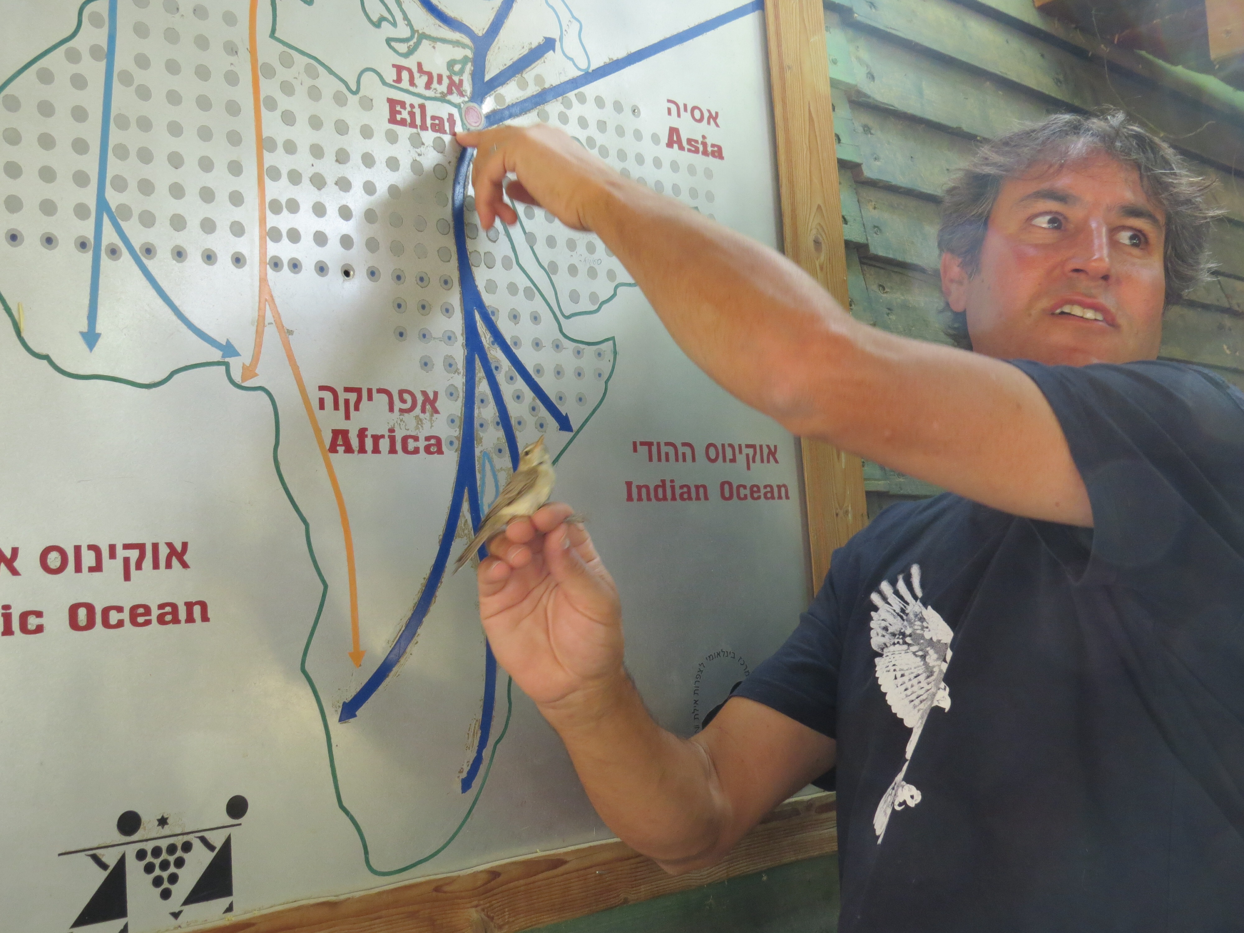 Noam showing us the migratory routes across Israel from Africa to Europe and Asia.