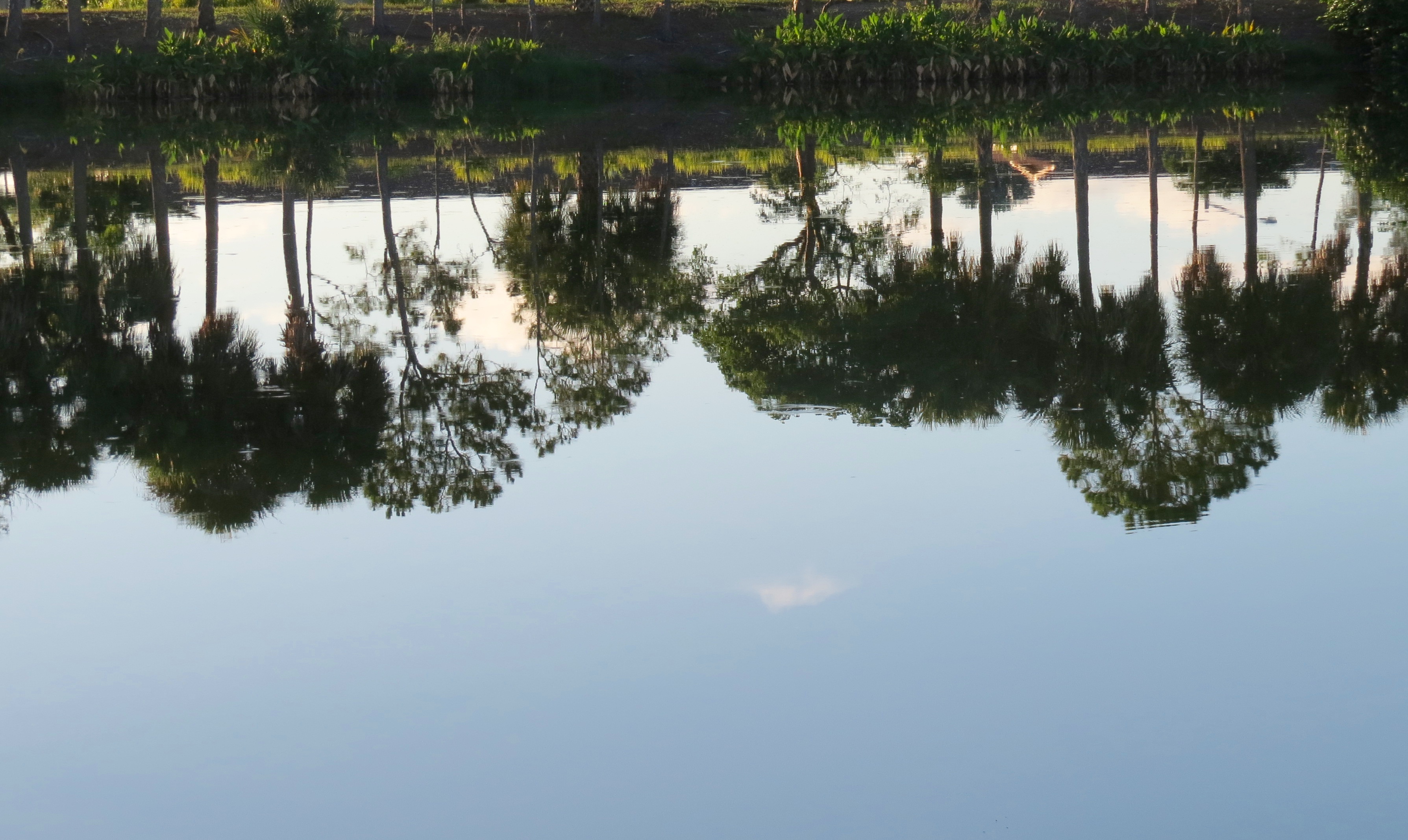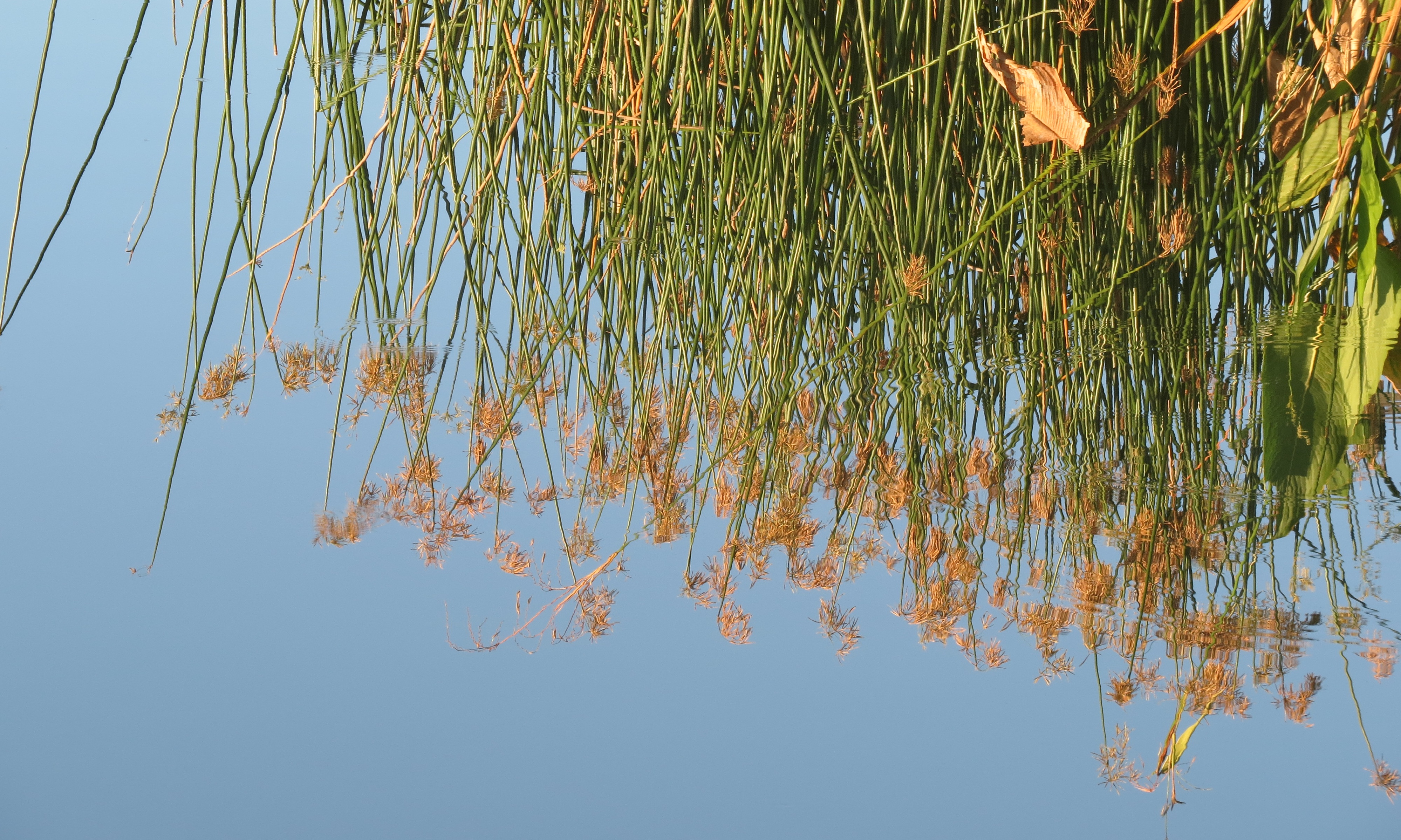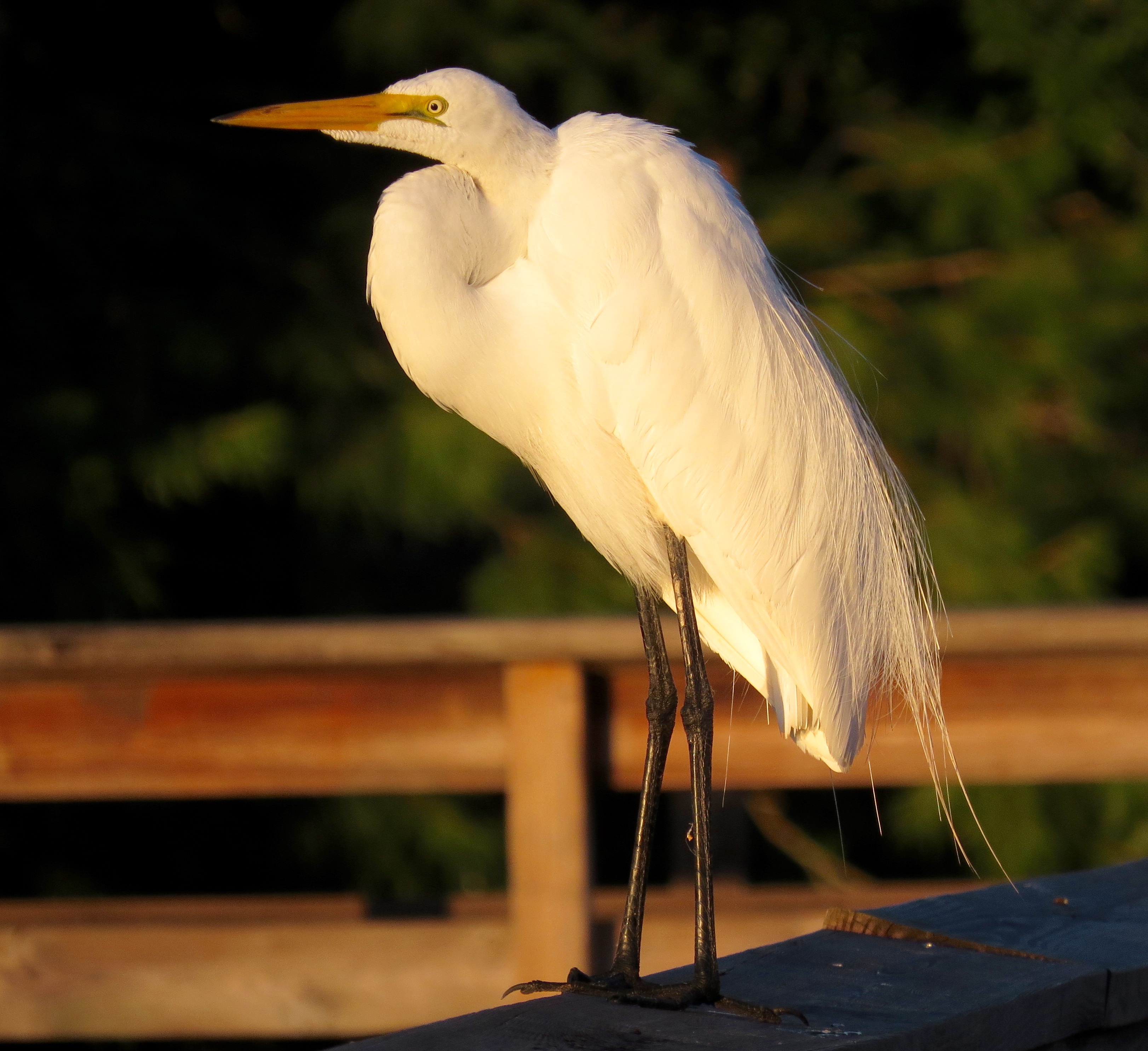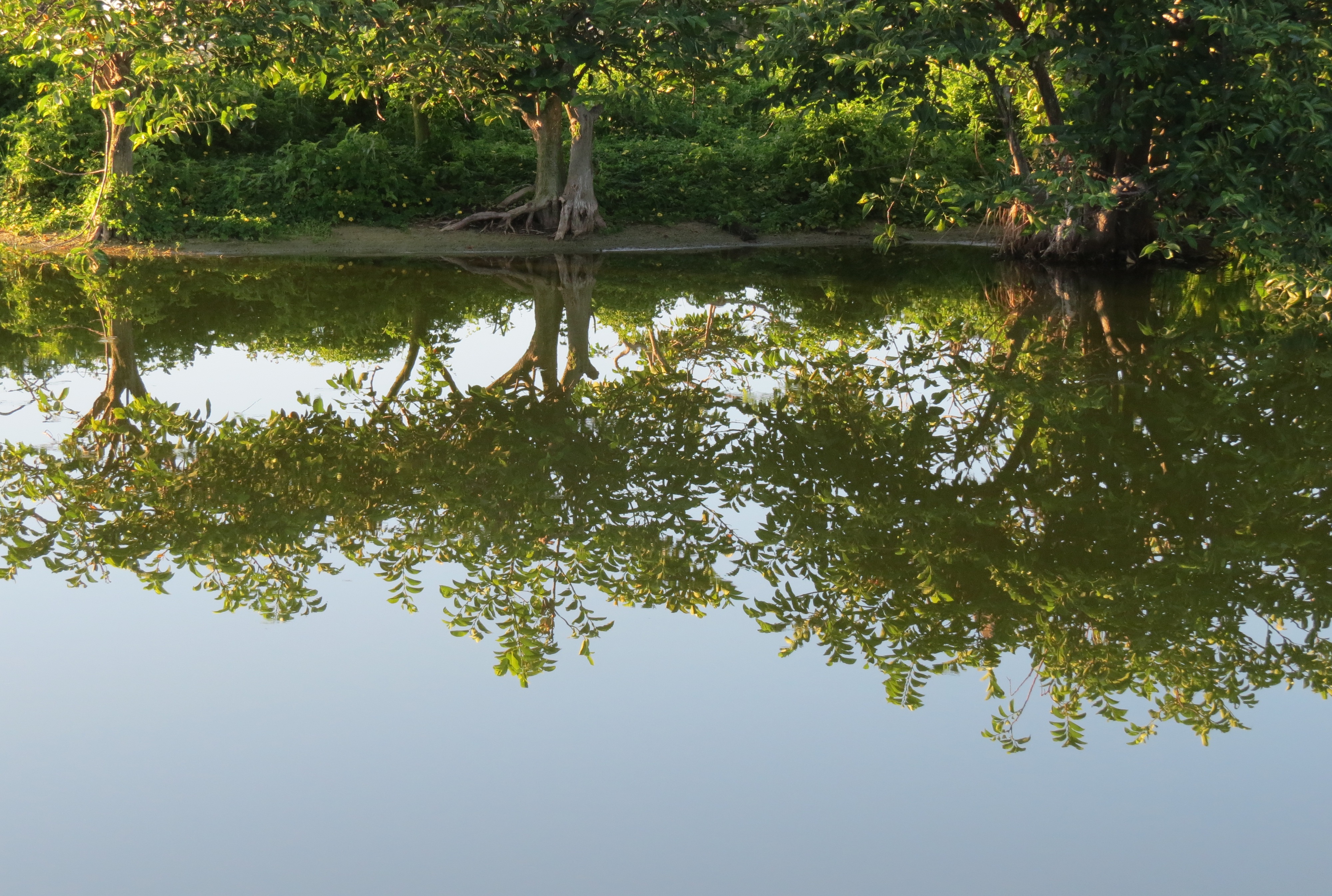 It seems amazing that one can arrive at the preserve at 6:30 am, and still miss some of the best morning light!  How much earlier can sunrise get?? Nonetheless, I was happy to see the White Ibis featured above looking stunningly rosy, just as the dawn broke (alternatively, one might say he looked like he’d just finished dribbling a strawberry popsicle down his chin!)IMG_3786And it was wonderful to watch the colors of the sunrise literally changing the feathers of this Great Egret from white to a subtle pink as he started preparing for his day.IMG_3794But what really fascinated me was that this other Great (White) Egret – who landed on the boardwalk just 20 feet away, was bathed in the yellow glow of the very same sunrise, instead of pink – just exactly 9 minutes later!IMG_3799 IMG_3798As I walked along, I was delighted, as usual on quiet mornings, by the utter stillness of the water. The reflections of the trees and the islands are so vivid at times like this.IMG_3814IMG_3800The pond plant life of all kinds looks even more beautiful against (or reflected in) that calm, placid water at this time of year in the early hours.