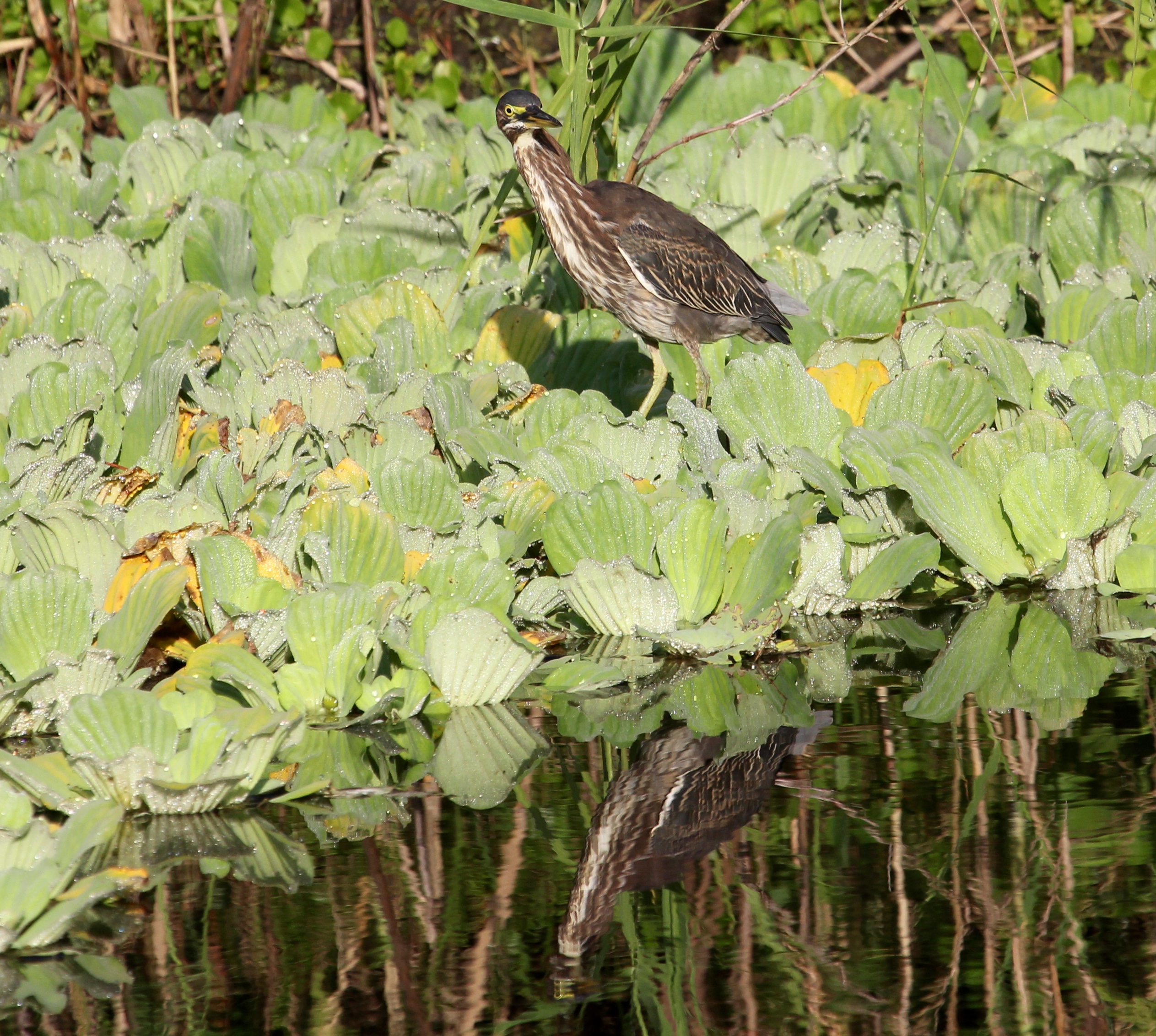 A sweet little Green Heron – looking a bit lost in a sea of lake lettuce . . .