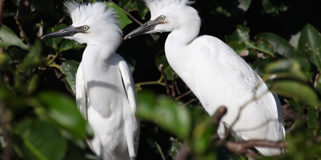 These two young Cattle Egrets above are looking quite debonair, with their sleek feathers and mini-crew cuts.