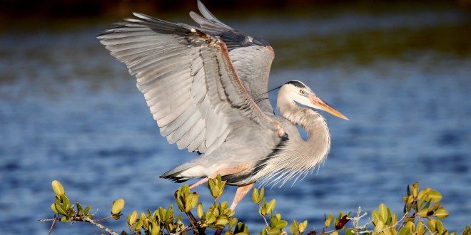 The Great Blue Heron gazed up at a little tree island, as if to gauge its height in preparation for a landing.