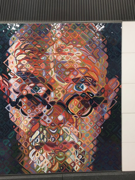 I have seen Close’s portraits in a museum and they are stunning. His subway mosaics look as beautifully complex as his regular work.