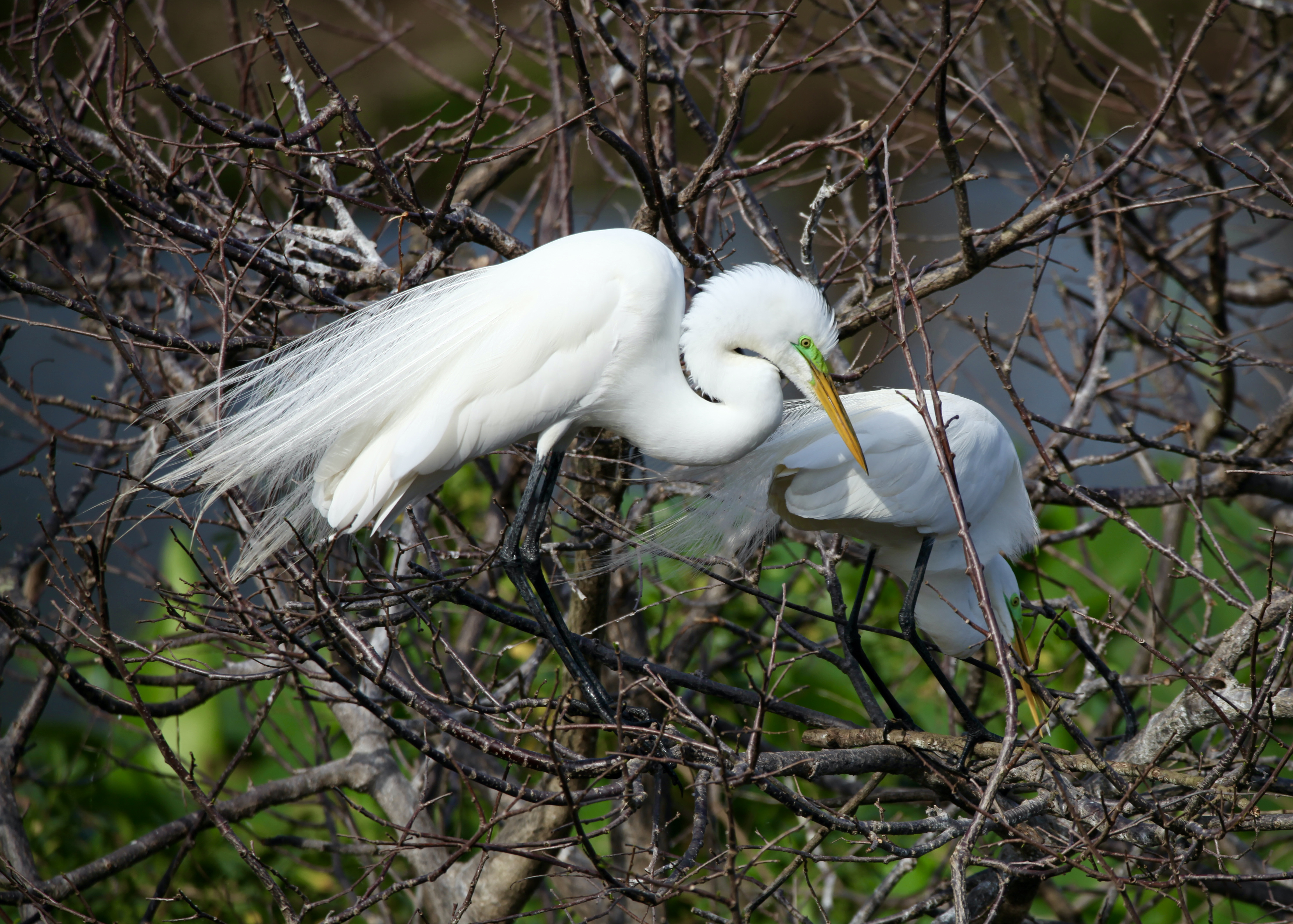 Yes! Itβs quite remarkable, Yishai, how birds will develop these brilliant colors during mating season. Both the male and the female develop the green facial color and the long wispy feathers. βWhy green?β is a great question β wish I knew the answer to that one!