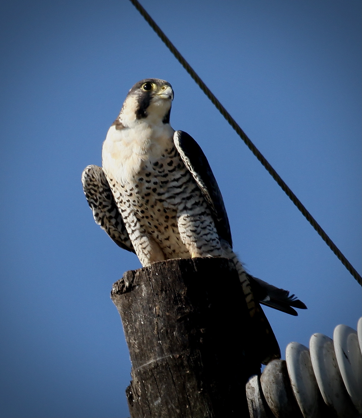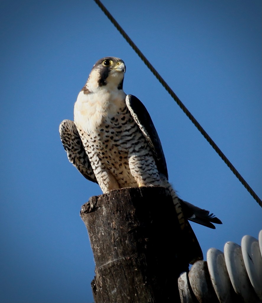 From a distance, I initially thought this was an Osprey – they’re always sitting on top of power poles like this. But, what a special moment when I realized it was actually a magnificent Peregrine Falcon! I’ve seen Peregrine Falcons only a couple of other times and never this close up . . . I didn’t even care about the power lines in the way!