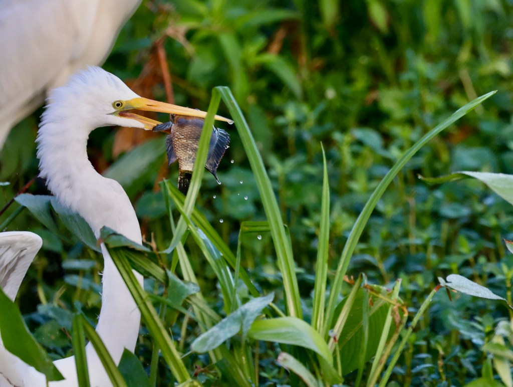 One egret’s loss is another’s gain. I empathize with catching a fish only to immediately lose it. Been there done that – many times!