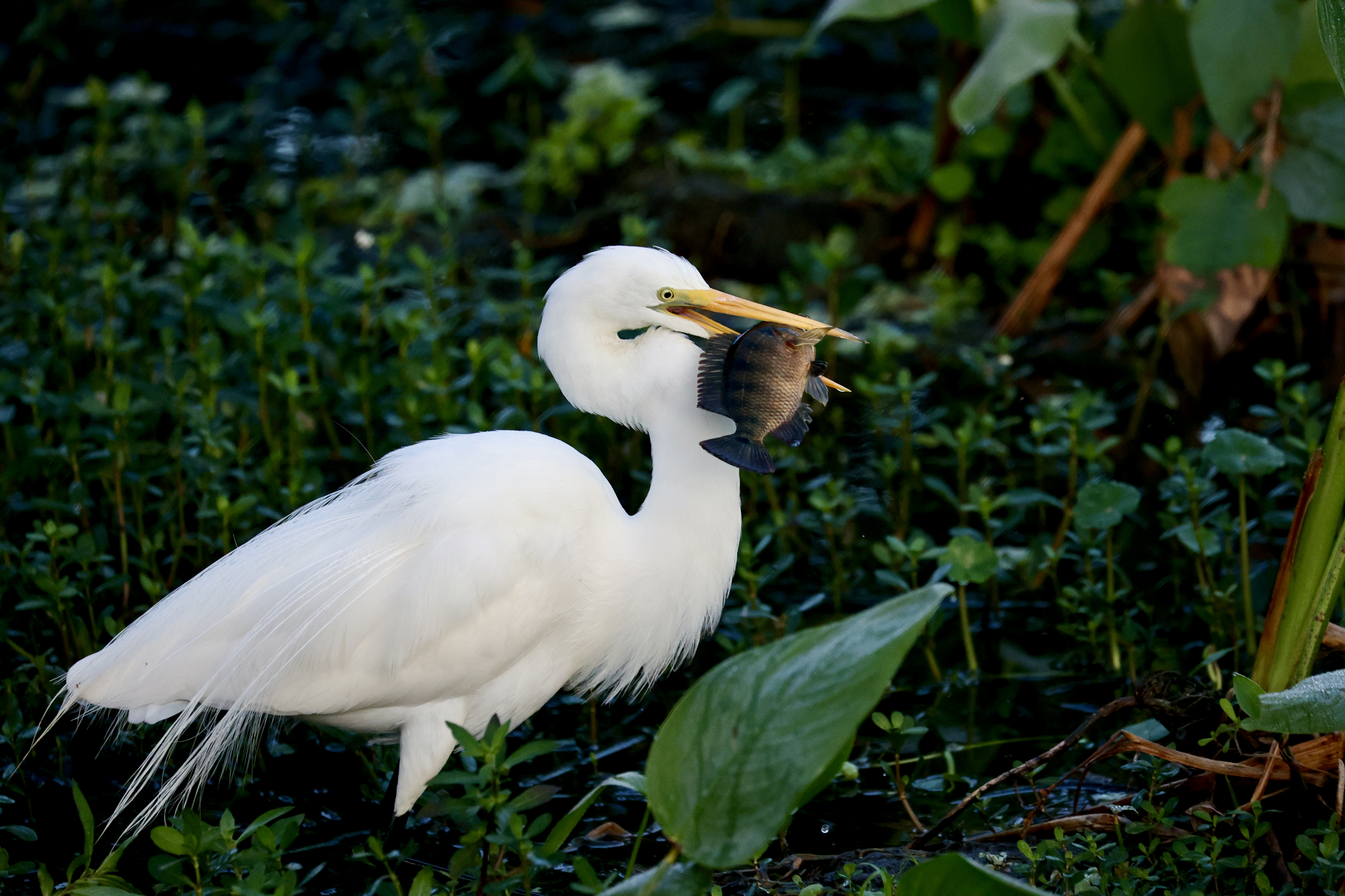 Alas. . . . the Egret eventually lost his grip and the fish got away! 😣