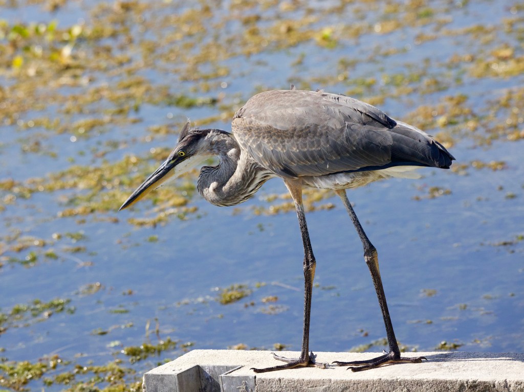 We recently encountered this handsome Great Blue Heron fishing off a concrete wall at the Orlando Wetlands.