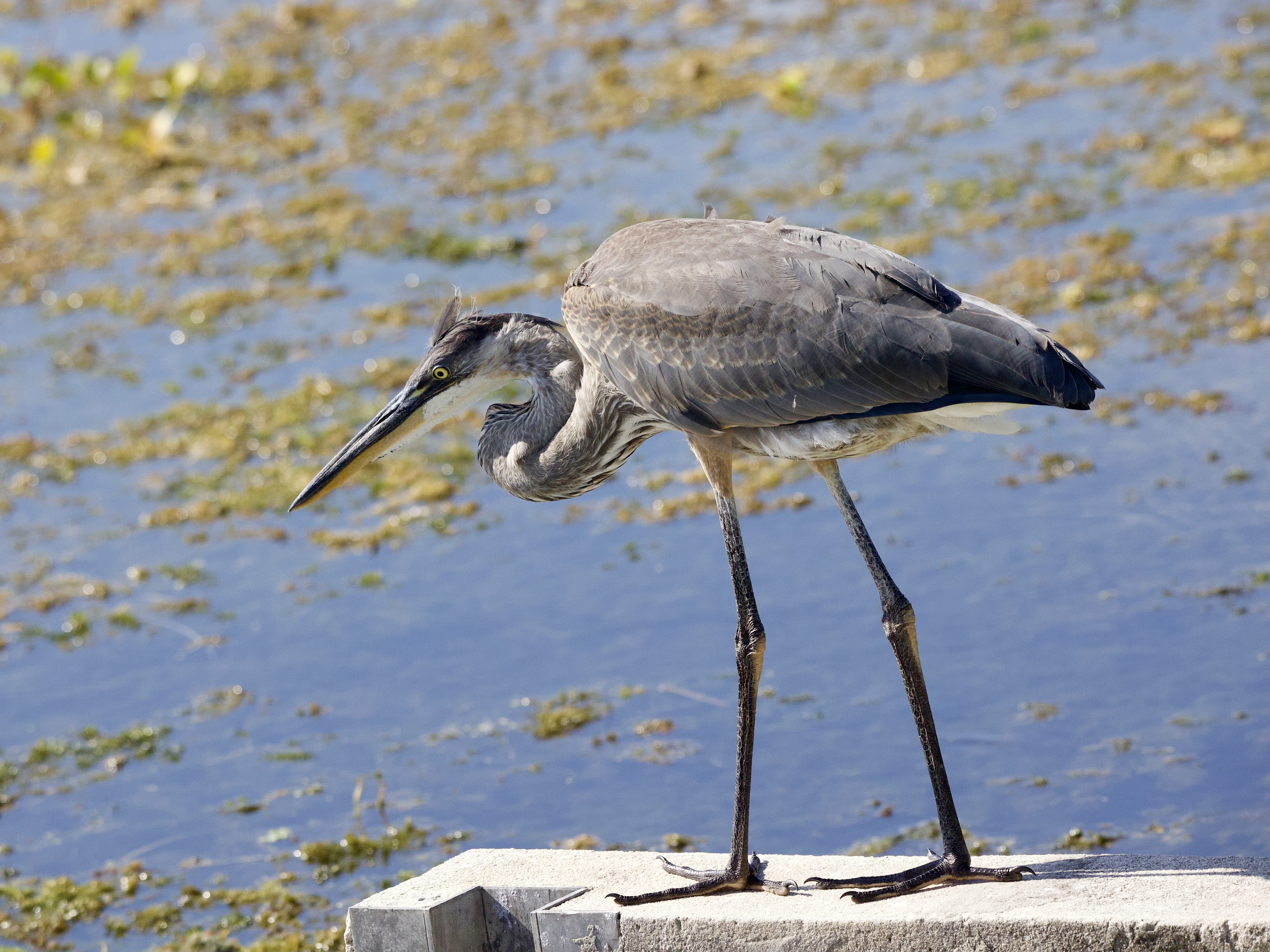 We recently encountered this handsome Great Blue Heron fishing off a concrete wall at the Orlando Wetlands.