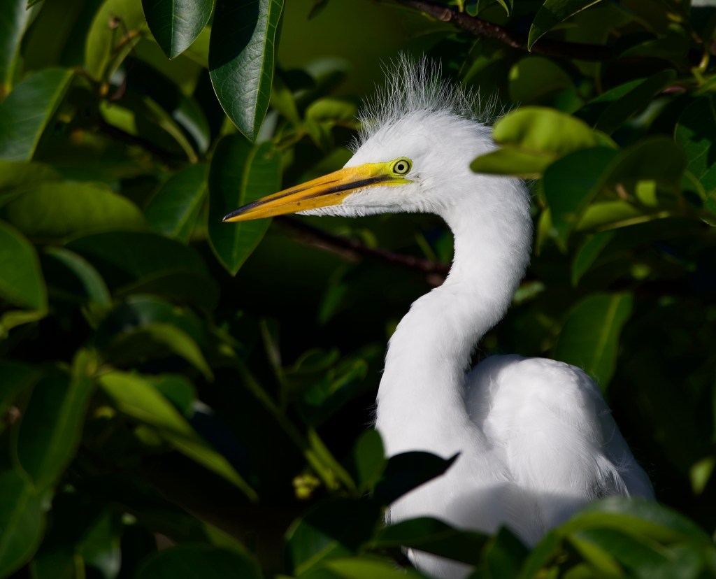 The sweet bird above is one of the many adorable Great Egret fledglings growing up in our local wetlands this past spring.