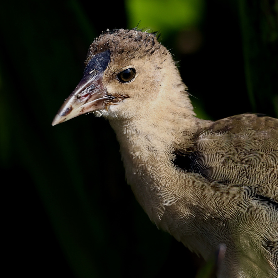 Before long our young bird will begin to show the iridescent bluish-purple plumage and candy-corn red and yellow beak of a more mature Purple Gallinule.