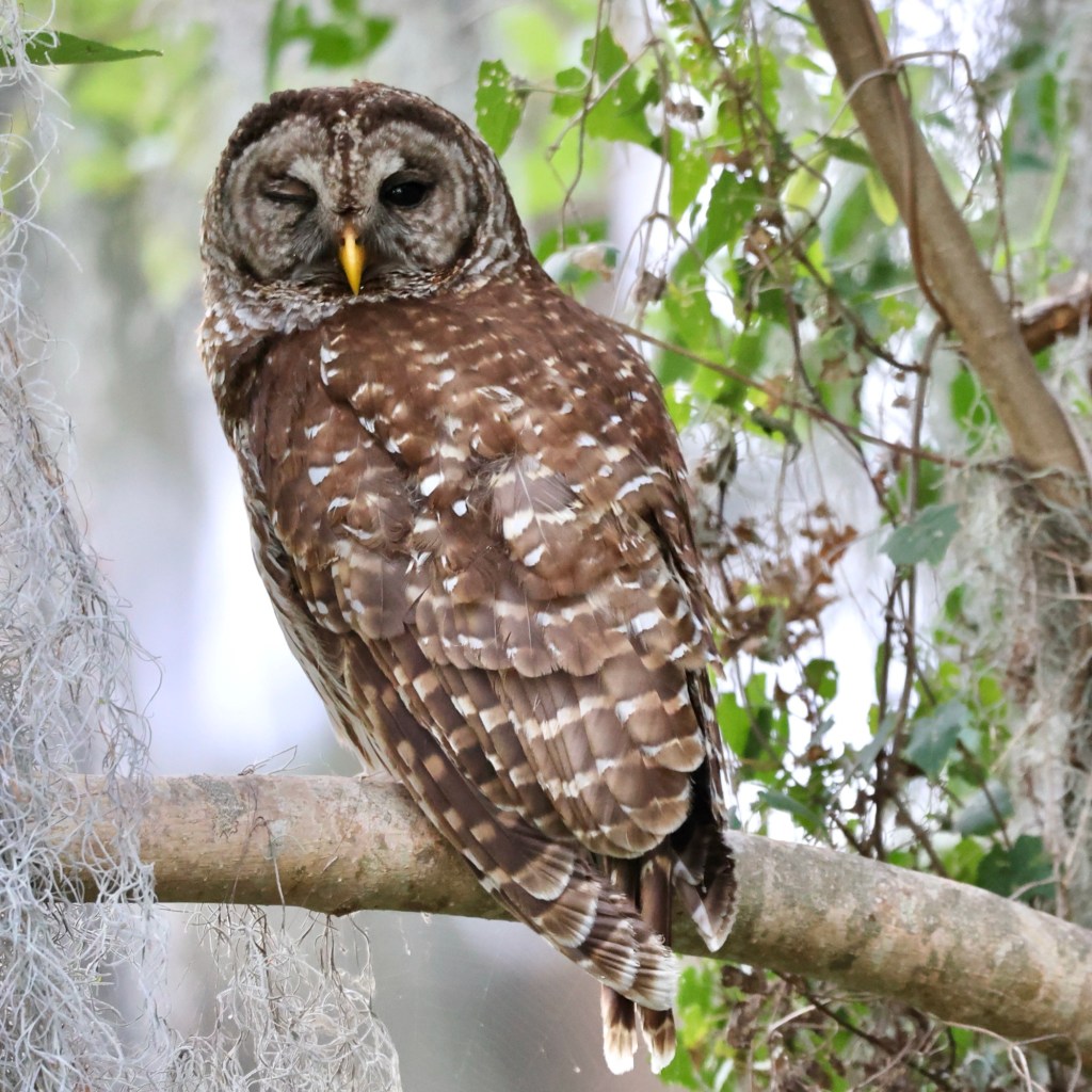 “Here’s looking at you,” it seems to say, 🦉😉 As hikers wander on their way. 🚶‍♂️🚶‍♀️ In nature’s cloak, so smart and wise, 🌲 The Barred Owl hides before our eyes. 🌳