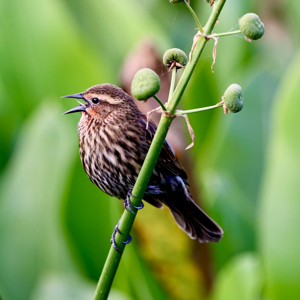 Female Redwings often get overlooked, but I love their striped plumage and the varying degrees of red or orange in their feathers. I hope you will be able to see some nestlings.
