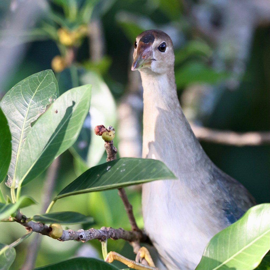 Amidst pond apples, a gallinule hides ๐ A juvenile dandy with bashful strides ๐ถโโ๏ธ