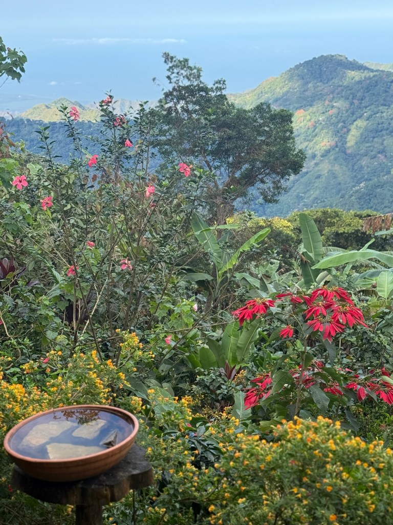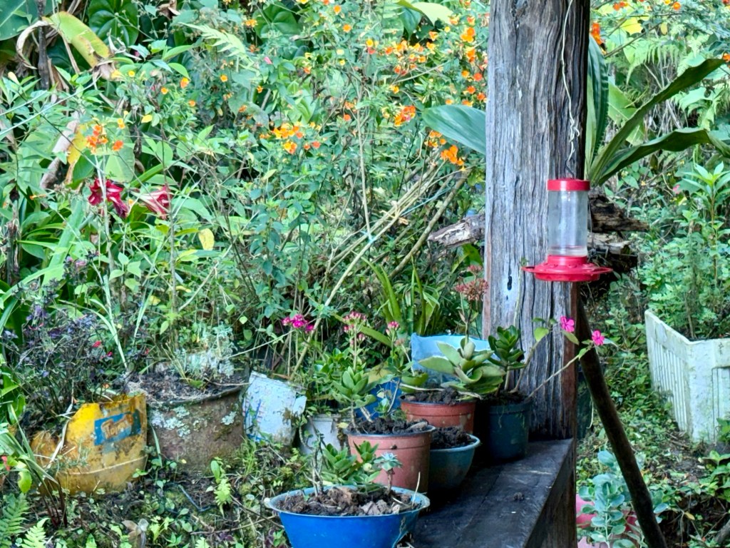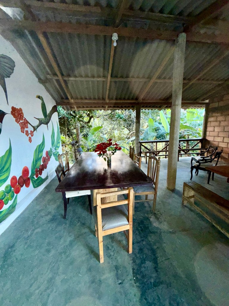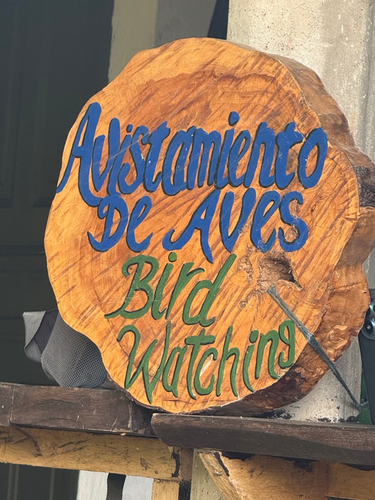 We stopped for morning coffee and birdwatching at this welcoming spot nestled in the dense vegetation of coffee and banana trees.