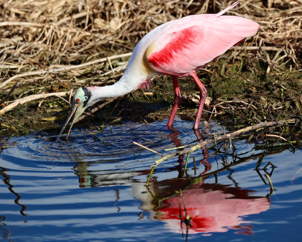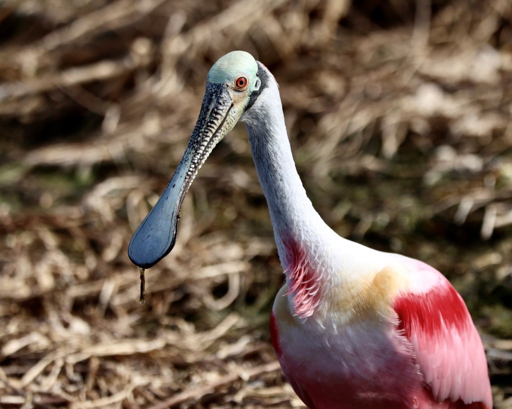 I’ve always enjoyed Audubon.org’s description of this bird: “Gorgeous at a distance and bizarre up close is the Roseate Spoonbill.” (Audubon.org)
